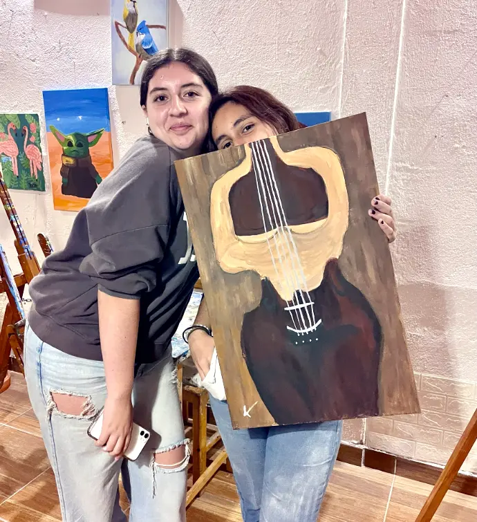 Explora color, composición y técnicas (acrílico/mixto) en clases regulares durante todo el año. Avanzas por niveles, desarrollas tu estilo y vas creando tu portafolio con obras que hablan de ti.